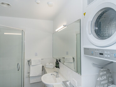 Each apartment boasts a spacious lounge and dining area, a full-size kitchen with an oven, stove, and dish drawers, and a bathroom with a shower, toilet, washing machine, and dryer, ensuring a seamless and self-sufficient stay.